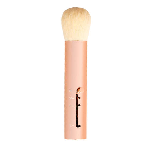 - Stand H (Hoog/Lang): In deze volledig uitgeschoven stand zijn de haren het meest luchtig. Dit is ideaal voor poederproducten zoals setting poeder of finishing poeder. De zachte, brede beweging zorgt voor een lichte, egale verdeling, waardoor je make-up wordt gefixeerd zonder een 'cakey' effect.